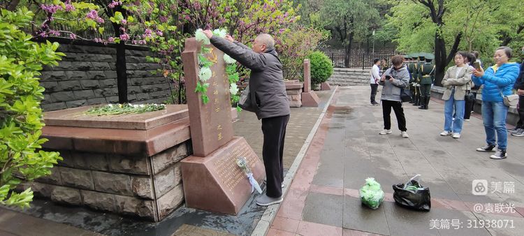 遇到了山东建筑大学志愿者团队,他们也在英雄山烈士陵园为烈士扫墓。我为戴成功伯伯扫墓的照片,由山东建筑大学志愿者团队提供,在此表示感谢。