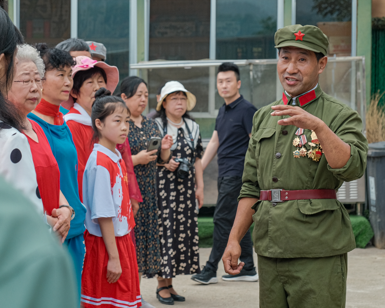 兵妈妈讲话,感谢本次活动给予赞助的中建三局一公司山东公司岳霄书记,为大家提供了车辆和午饭,感谢领队梁学秀大姐带领演员团队的精彩演出,感谢摄影师:刘同生、黄爱玲、贺平、鲍培华、张建民等拍照、录视频留下最美的感动瞬间。感谢参战老兵王恩亮搭建的红色教育基地平台,让大家接受了一次爱国主义教育,做公益的路上,需要有更多的爱心企业和个人参与进来,公益的队伍需要发展壮大,公益路才会越走越远。