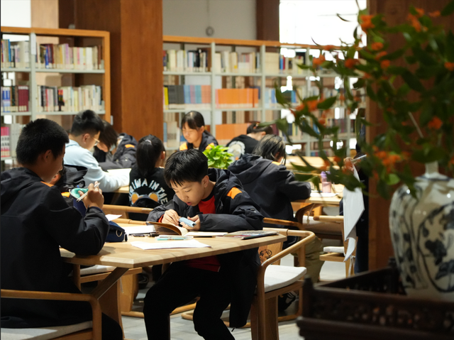 学科教室、图书馆和餐厅桌椅等采用美国进口红橡原木打造。图书馆为师生配置了丰富优秀的图书音像资料和便捷的文印服务。
