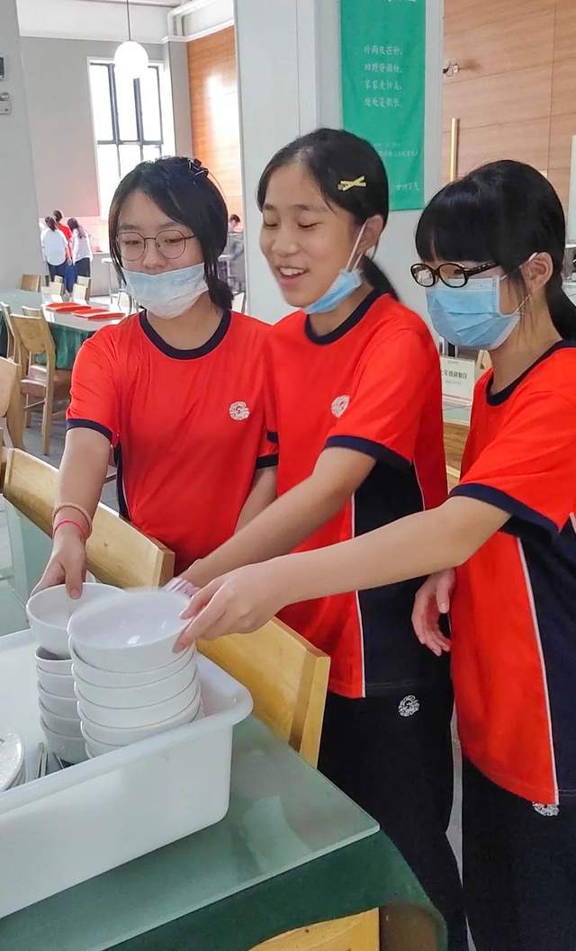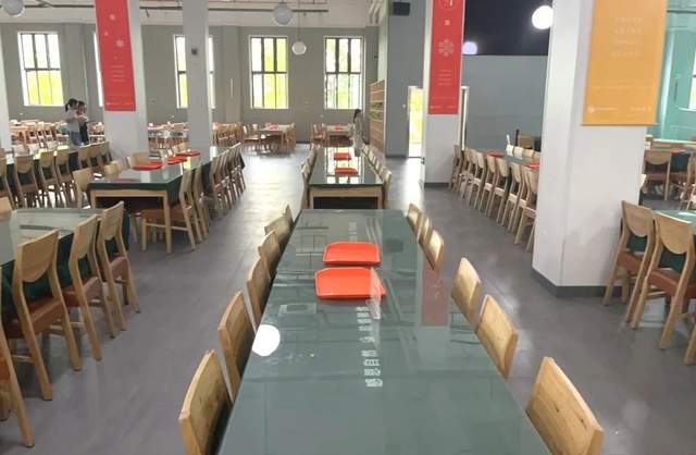 师生同餐:孩子们按学院与全校老师共餐同食,早中晚三餐为自助餐,另有点心时间。