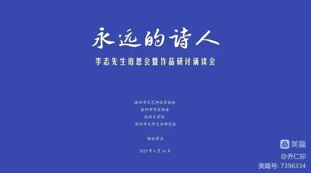 几十年来,李志先生笔耕不辍,勤奋创作,关怀与扶持青年诗人成长。他和李冷文、李清联、李六正、边玺中等老一代洛阳杰出诗人,对改革开放40年来的洛阳诗歌创作具有引领、鞭策、扶持和推动的巨大作用,受到三代青年诗人的崇敬与爱戴。他们的高贵品质和他们的优秀文字将与河洛大地同在!