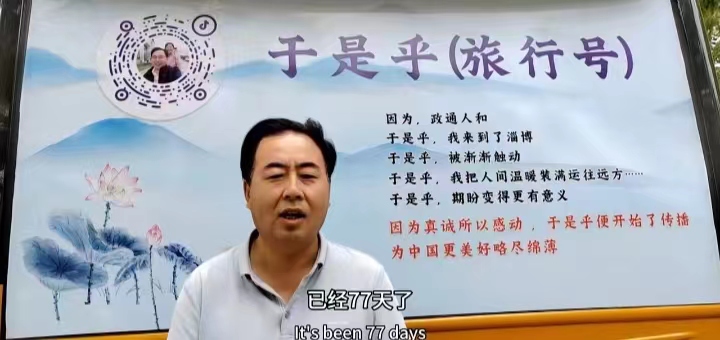 6月15日清晨,老于驾驶着挂了鲁C牌照,刷着“薪火传文明,永续中华魂”车体广告的房车从淄博朝着东方太阳升起的地方进发。临行前,他豪迈地写下了下面的诗句: