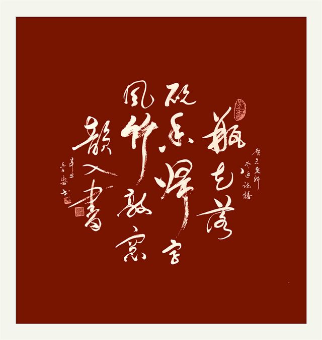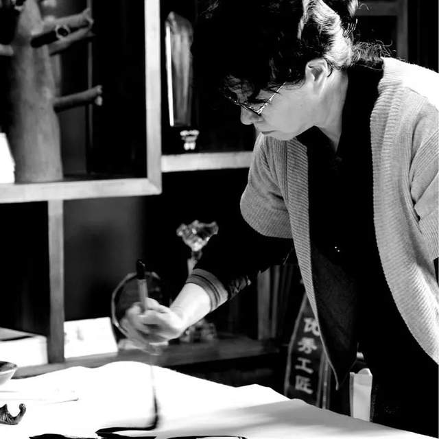 退休后更是挥毫泼墨书法艺海,把怀古书法艺术与当代书法艺术结合起来创作作品,受到不少书法爱好者的青睐。她的笔势既圆融遒劲、外柔内刚;又龙飞凤舞、奔腾豪放;她既楷、隶、篆、行、草五体皆来,又更彰显草书个性;她草书有貌似裙带飘扬,时而束身矩步,时有不可犯之势;可谓博采众长,自成体系。