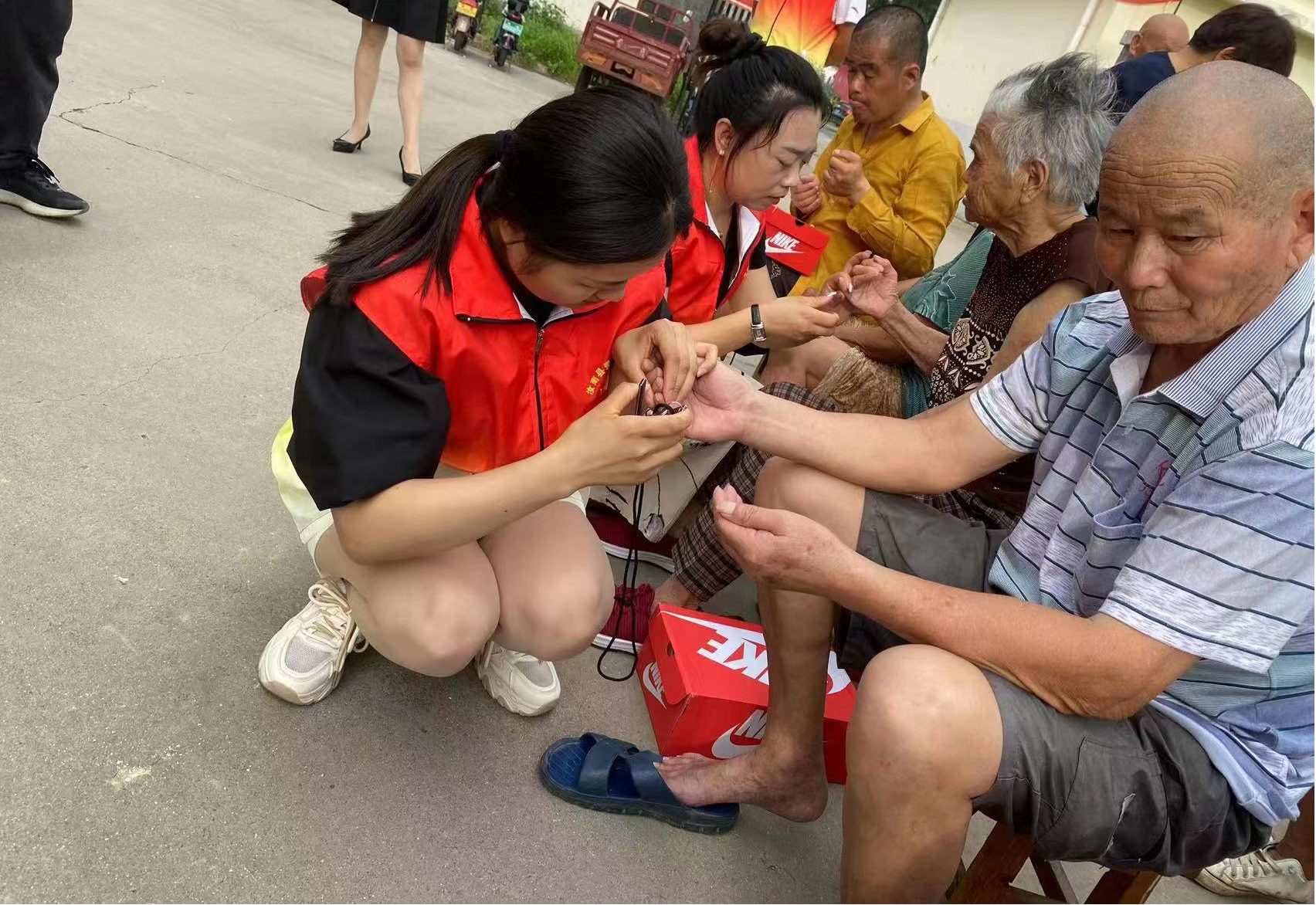 活动现场爱心公益协会的志愿者闫东明、彭林萍、牛佳、张莹、张丽、刘伟个个都忙个不停,拿出新鞋子给老人们穿上,老人们笑的都合不拢嘴。一位96岁的老人从爱心人士手中接过爱心物品,高兴的连连说到,这是党的政策好,共产党亲,才有我们这些老人们的今天,我们生活在养老院,还有这么多爱心人士关心关爱我们,让我们老有所依、老有所养,真的感到很幸福!”
