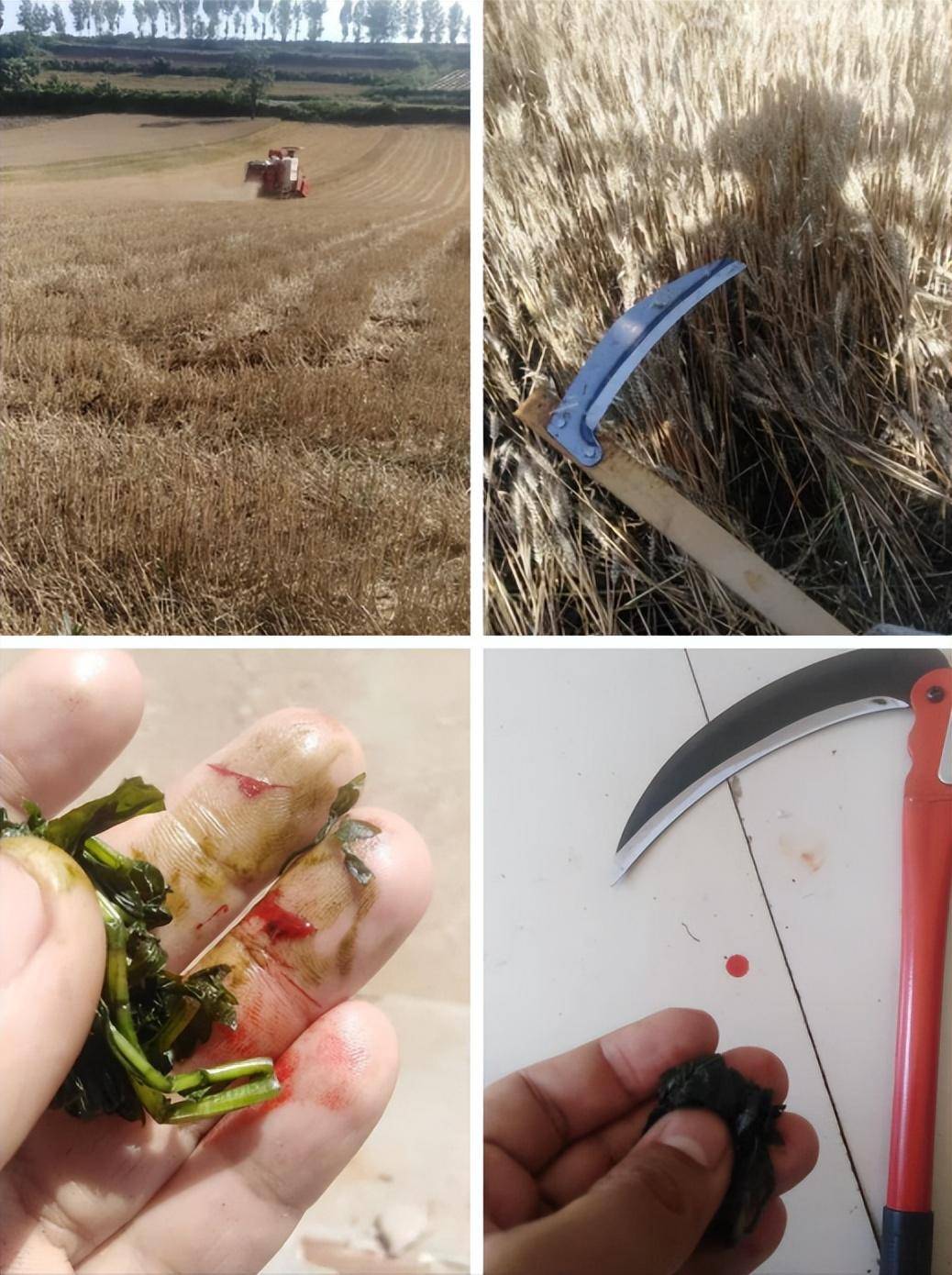 今年六月初,刚进入小麦收割季节的河南遭遇“烂场雨”,严重影响当地小麦的正常成熟。在这次灾害性天气中,薛老汉家的七亩小麦也遭遇了不同程度损失。张博顶着烈日,挥汗如雨,用平时拿笔和握鼠标的双手挥舞着镰刀,帮薛老汉家抢收粮食,有板有眼地进行着一场如火如荼的“战斗”。却因操作不熟练,将手割伤。他硬是凭着一股倔劲和干劲,弯着腰、握着手里的镰刀收割。