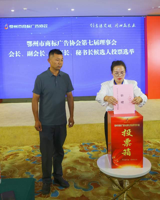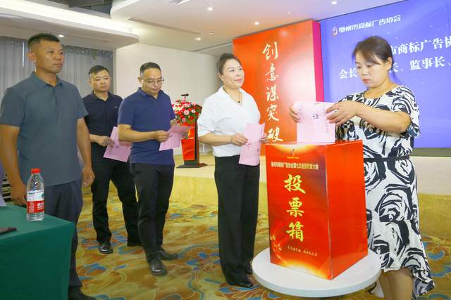 会议以无记名投票方式,在监票人的监督下选举产生了鄂州市商标广告协会第七届理事会主要组成人员,会长:李朝进;副会长:尹毅、叶祥元、邱德龙、卢宏杰、刘羽菲、刘敏、陈斌、苏松林、赵前顺、胡立新、姚志刚、俞云福、涂胜辉、彭易林;监事长:罗天桥;秘书长:李荣。