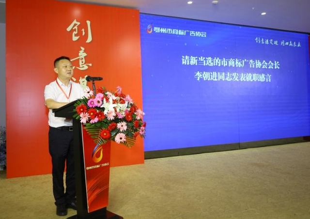 在热烈的掌声中,新当选的协会会长李朝进同志发表了就职感言,他阐述了协会今后的工作重点:一是坚持服务兴会,强化协会工作职能。二是加强自身建设,提升协会服务水平。三是推动行业发展,培育协会特色品牌。空港新城、田园鄂州的美景在向我们招手,协会将和鄂州全体商标广告业同仁一起,乘着党的二十大东风,为我市绘就“两区一枢纽”建设蓝图增光添彩!新当选的协会秘书长李荣还代表业界同仁宣读了《群策群力克时艰、同心同向筑辉煌——鄂州市商标广告协会第七届会员大会倡议书》。