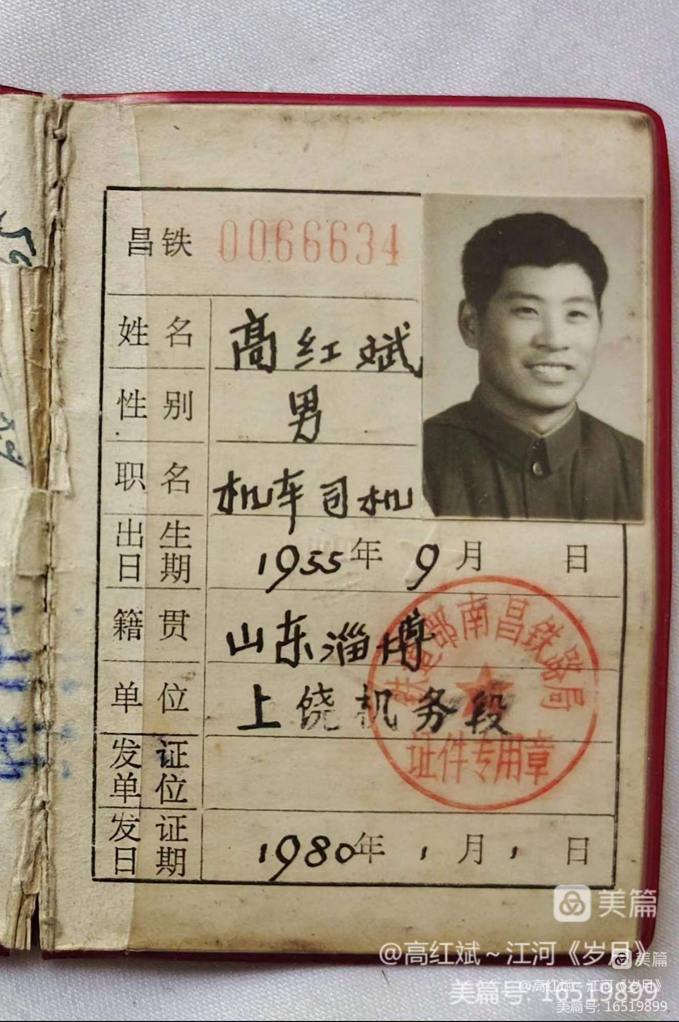 作者简介:高红斌,生于1955年9月,于1972年12月16日参加人民铁路工作,原供职于南昌铁路局上饶机务段。曾在宁赣铁路(后更名为皖赣铁路)工作,从一个学习司炉干起,司炉定职后晋升为副司机,1979年7月7日晋升为司机。我们上饶机务段当时所担当的乘务区段:上行:上饶到金华,下行:上饶到鹰潭。鹰潭到景德镇等线路。于1982年9月调回山东老家,在淄博机务段担当司机工作,乘改革开放的春风,于1984年4月参加原青岛分局第一届(也是唯一的一次)首届干部公开招聘考试,后提升为机车调度员。在所担当的乘务和值班当中,安全行车和调度指挥无任何责任行车事故,与兄弟部门和班组配合,也曾多次防止和杜绝了各种事故的发生,一辈子用心做事,以善待人,平平淡淡,但是兢兢业业,於2015年的9月,在青岛机务段光荣安全退休。