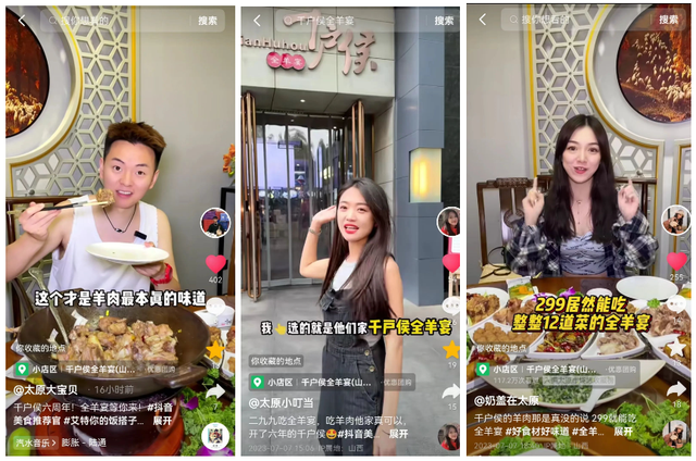 “从羊头吃到羊尾,一个部位都没落下,能吃这种级别的全羊宴,可谓是顶到了吃羊肉的‘天花板’。”抖音平台拥有百万粉丝的太原发现哥,在品尝过全羊宴后兴奋地说。