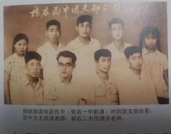 插班就读张店民中(张店一中前身)时的团支部合影,后中为王启滨老师,前右二为任德法老师。