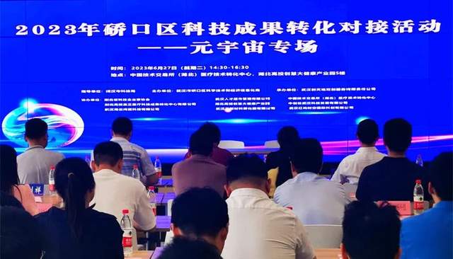 近日,由硚口区科学技术和经济信息化局主办,武汉创天地双创服务有限责任公司承办,湖北省科技企业家协会、中创谷武汉科技发展有限公司、武汉海云鸿翼科技有限公司联合协办的“2023武汉市硚口区科技成果转化对接活动——元宇宙专场”在中国技术交易所(湖北)医疗技术转化中心(硚口区江湾国际中心,湖北高投创慧大健康产业园)顺利举行。