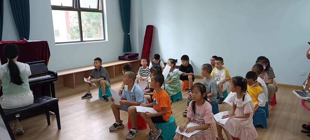 喜欢音乐是孩子们的天性,在内容多样的音乐活动中,孩子们积极参与,活泼快乐,他们的身心得到良好的陶冶和发展。志愿者老师首先通过基本乐理知识帮助孩子们认识乐谱,随后,通过朗朗上口的歌曲使他们熟悉曲调,寻找到规律,逐渐进入状态。