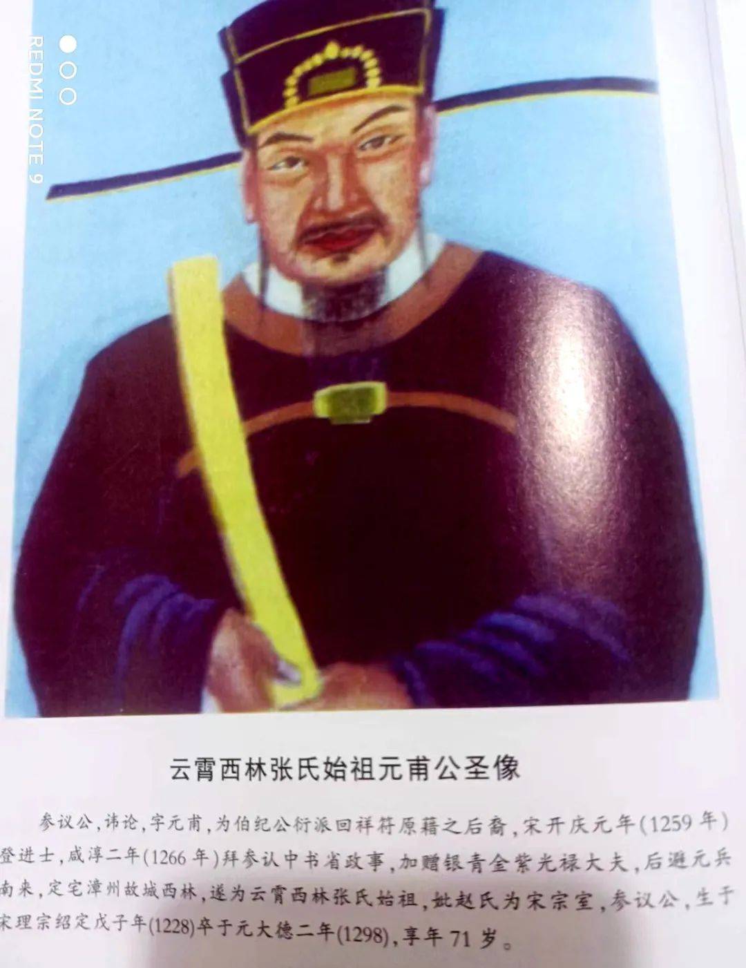 参议公(1228年-1299年),諱论,字元甫。伯纪公21代孙。宋开庆元年(1259年)荣登进士,咸淳二年(1266年)拜参议中书省政事,加赠银青金紫光禄大夫,后避元兵,定宅漳州故城(今云霄县西林),遂为云霄西林张氏始祖。