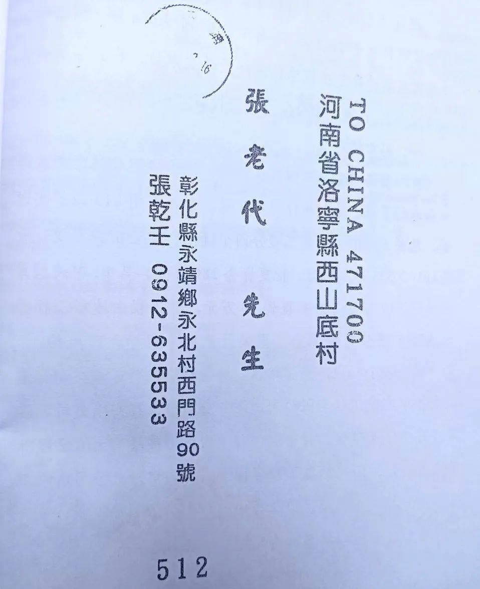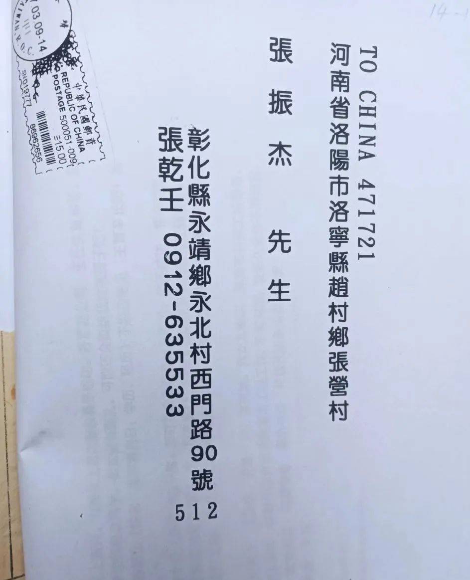 当他们看到河南省洛宁县的一支时,兴奋地说:“想不到河南省洛宁县也有我们的族亲!还是康熙年间迁过去的!”他们向张明春先生索要了洛宁族亲的联系地址。从此,台湾与洛宁族亲开始互通信函,联络情感!张乾壬先生还向洛宁族亲邮来三本《台南郡恒春县张氏族谱》,以供洛宁族亲阅览。