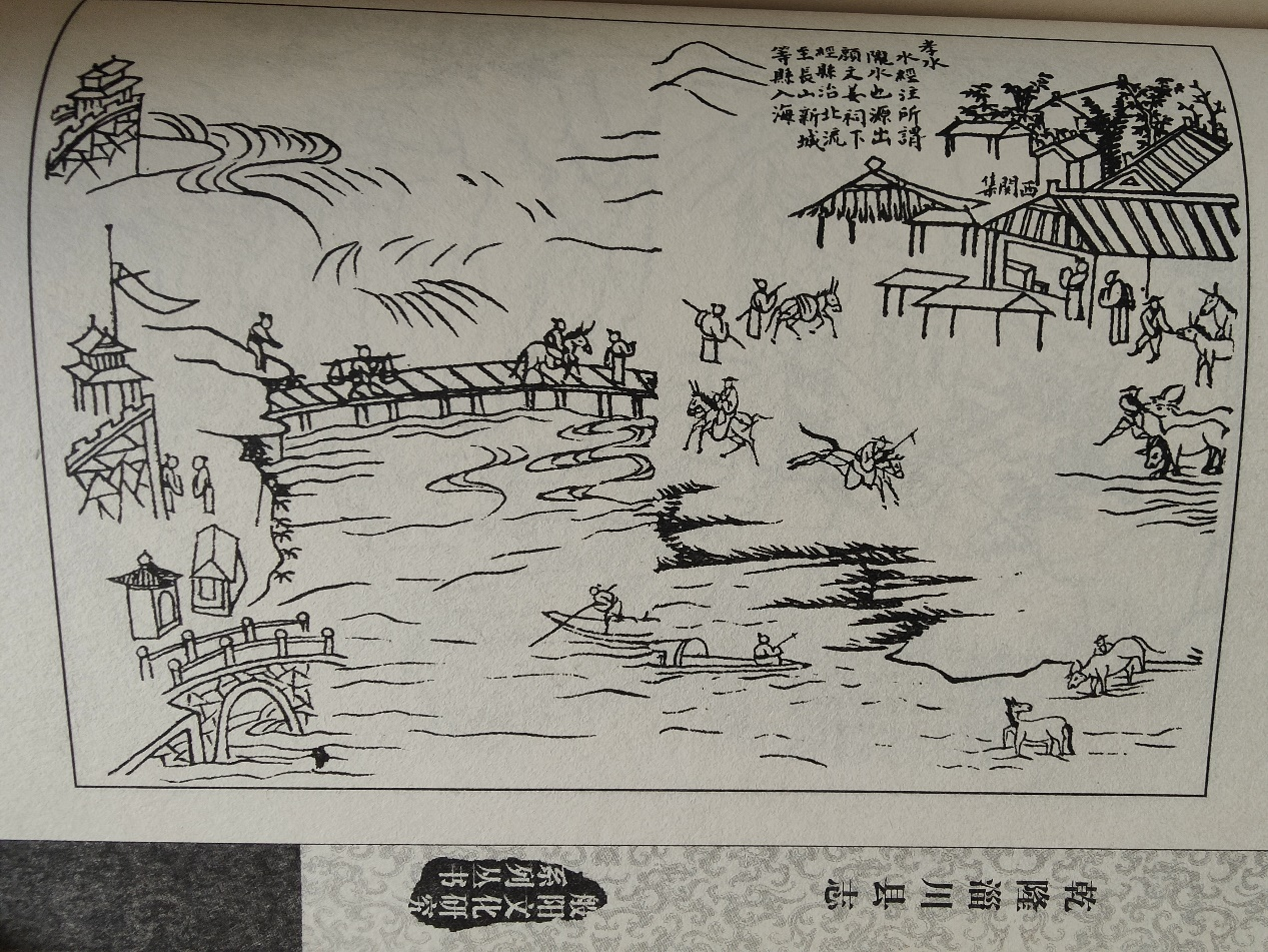 图中原文:《水經注》所謂隴水也。源出颜文姜祠下,經縣治北流至長山、新城等縣入海(简体:《水经注》所谓陇水也。源出颜文姜祠下,经县治北流至长山、新城等县入海。)