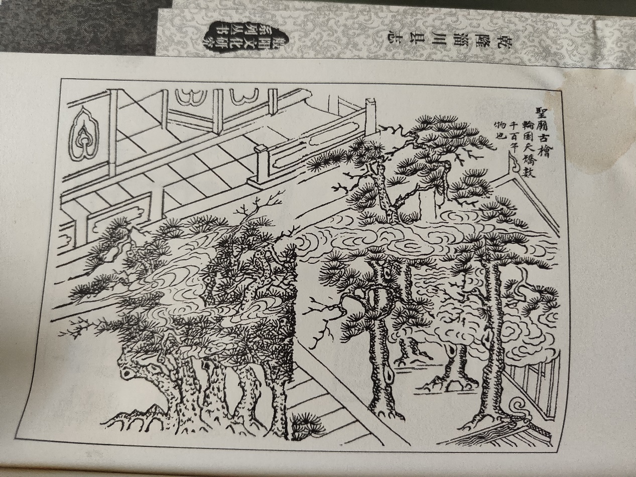 明·嘉靖廿一年淄川教谕吴俸有“淄川八景”诗,其中之一为《文庙古桧》: