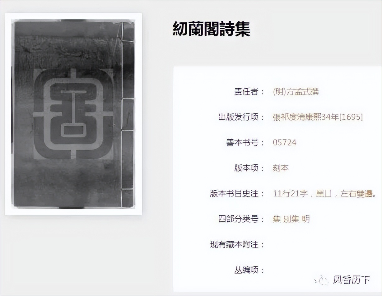 国图中华古籍资源库对于《纫兰阁诗集》的简介