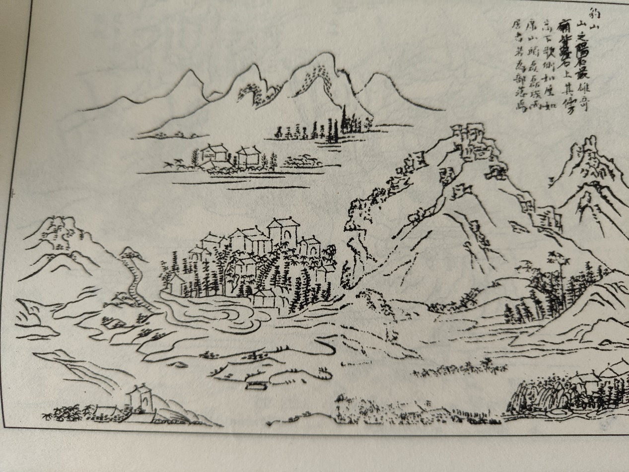 清·康熙《淄川县志·山川·豹山》描述较细:“豹山,县西五十里。山巅建立宫观,各依巨石,上筑高台,梁柱阑楯皆石。历级而上,大似浮槎。绝巅两石相对,一径相通,呼曰‘天门’。从松柏杂树中遥望,南山缥缈,若蓬莱三岛。有泉出山南麓,冬夏不涸,东注为溪。邱文学希潜架数椽于此,题曰:‘画村清梦楼’云”——豹山在淄川西部,离淄川城50里。山顶建有佛殿道观,寺庙都背靠巨石,上面筑有高台。殿的房梁、立柱、栏杆等等全为石质。沿着台阶走上去,感觉像漂浮的大船。顶巅上两块大石相对,一条窄径相通,称为‘天门’。从松柏杂树中远望,南面山峰在缥缈之中,就像仙山蓬莱三岛。有泉水从山南坡下流出,冬夏都不干涸,往东流为小溪。贡生邱希潜在此盖了几间房,题名叫“画村清梦楼”。