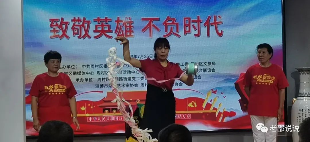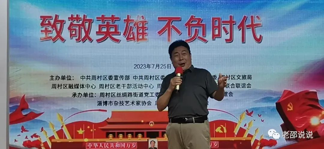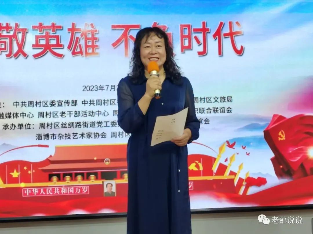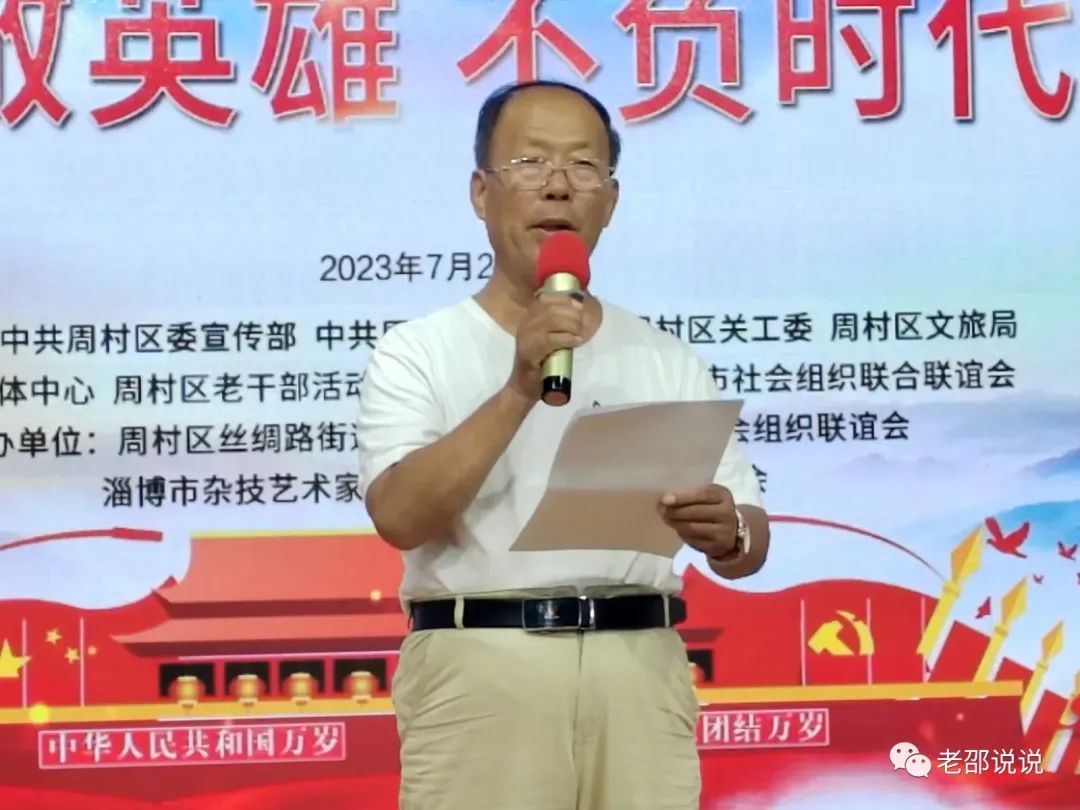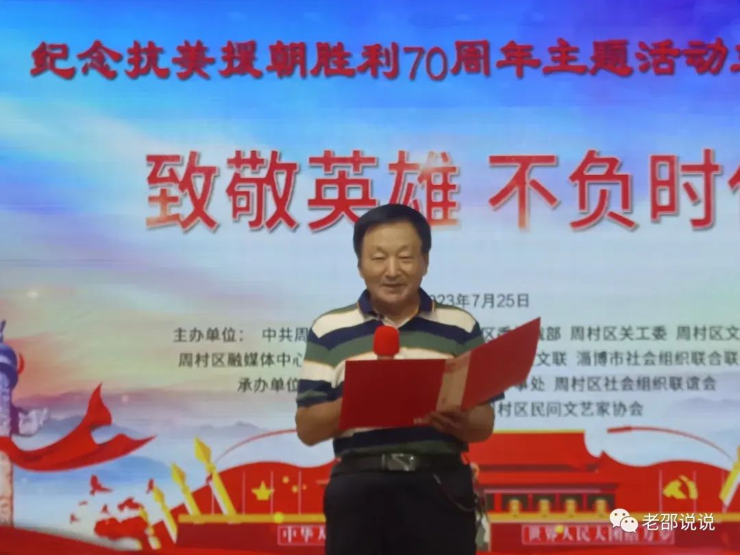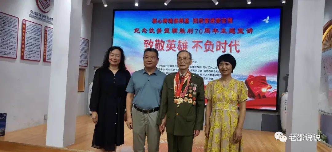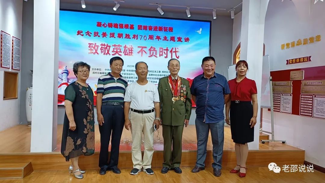 2023年7月25日,周村区鸿雁社会组织又举办了“纪念抗美援朝胜利70周年·致敬英雄 不负时代”主题宣讲会,区委区政府有关部门领导出席,老兵孙广瑞出席并宣讲,少先队员向孙爷爷献花,志愿者们分享学习《老兵情》的感悟并演出以学习孙广瑞同志为主题的节目,活动现场的气氛高涨而浓烈。