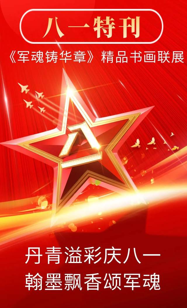 为热烈庆祝建军96周年,聆听时代声音、紧握时代脉搏、坚定文化自信,多家媒体联合举办:八一特刊——“军魂铸华章”精品书画联展,以书画艺术的形式向中国军人致敬!