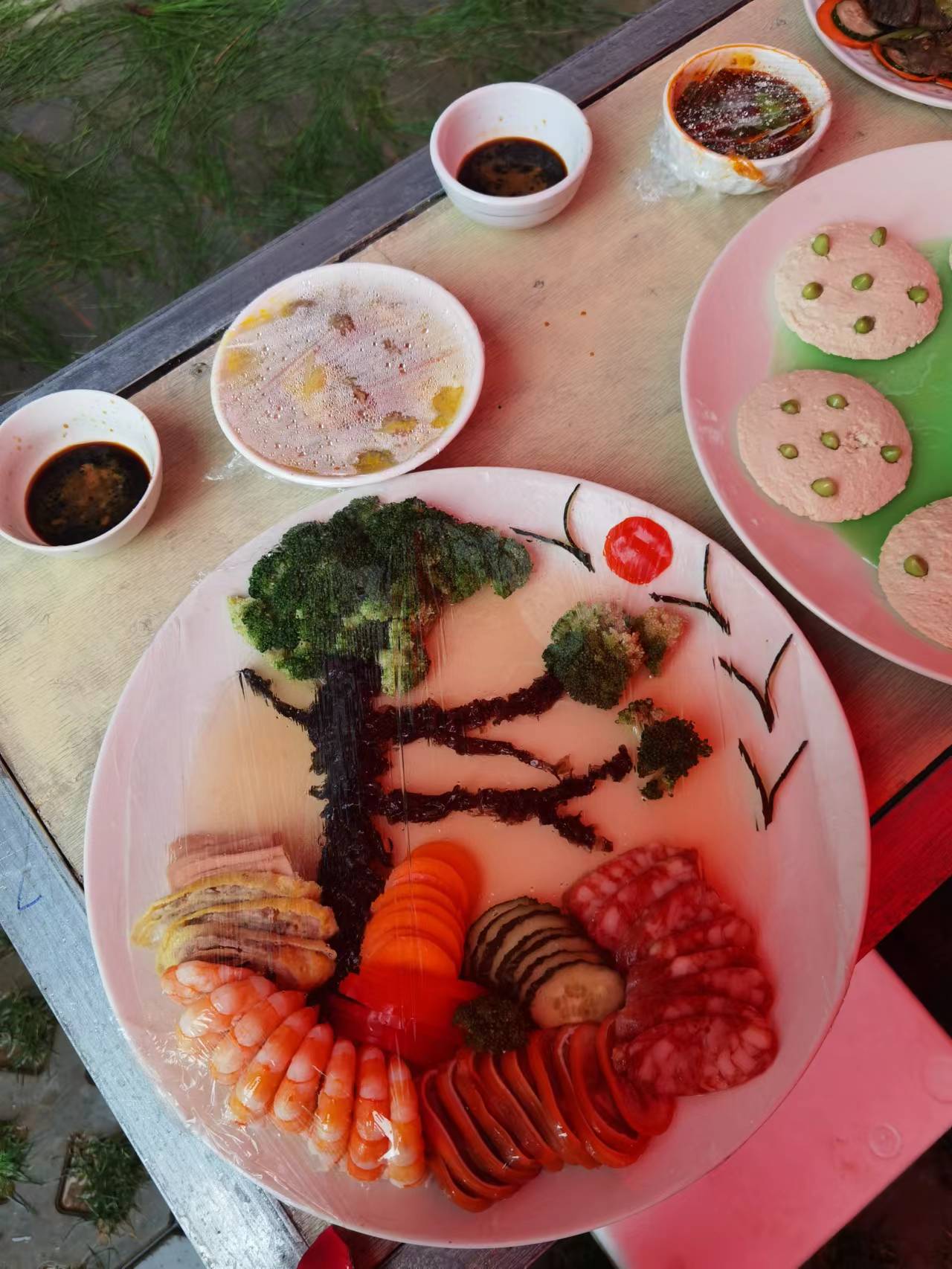 品评美食迎宾客,色香味献惹人褒。