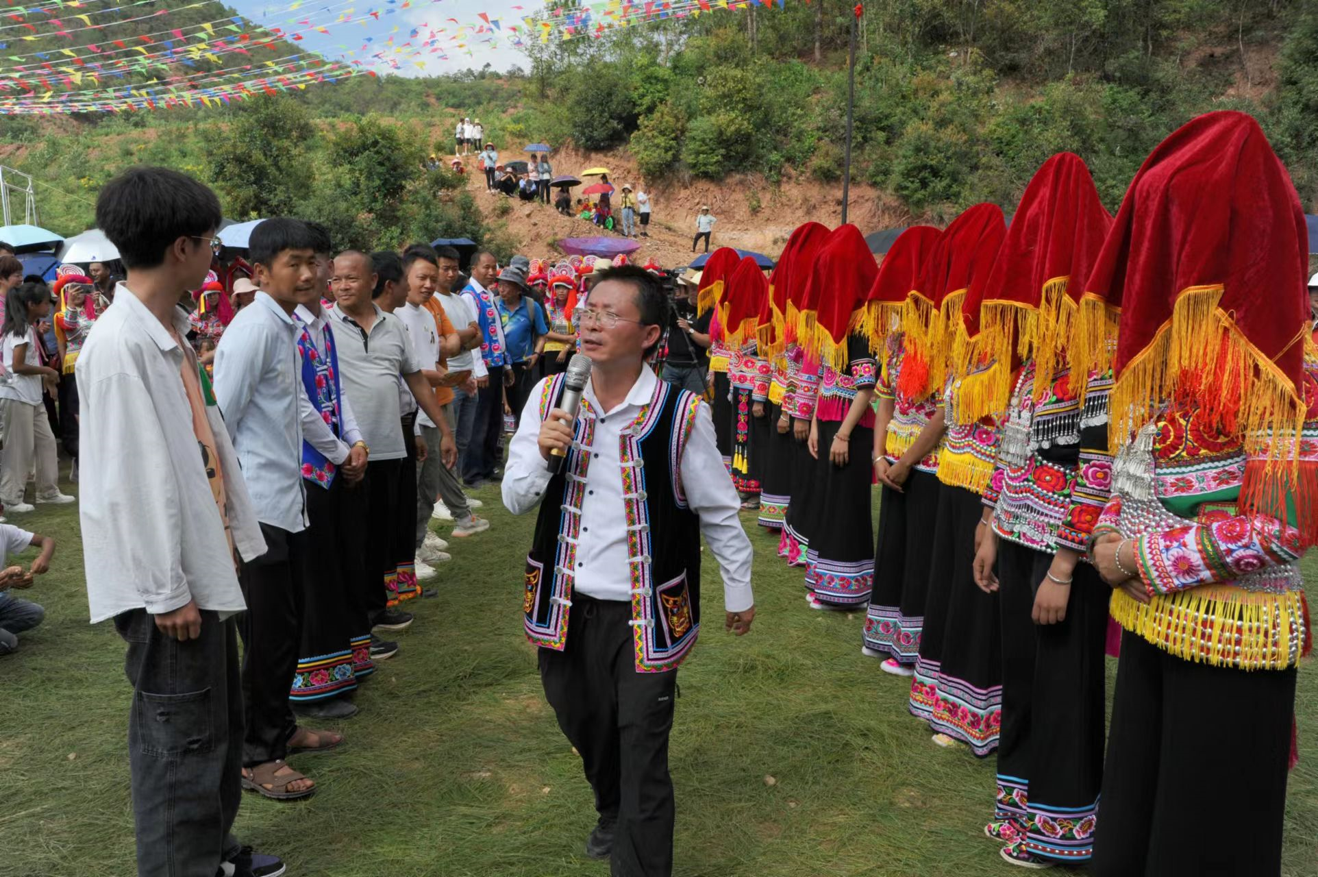红头盖下藏彝妹,却恼阿哥对面寻。