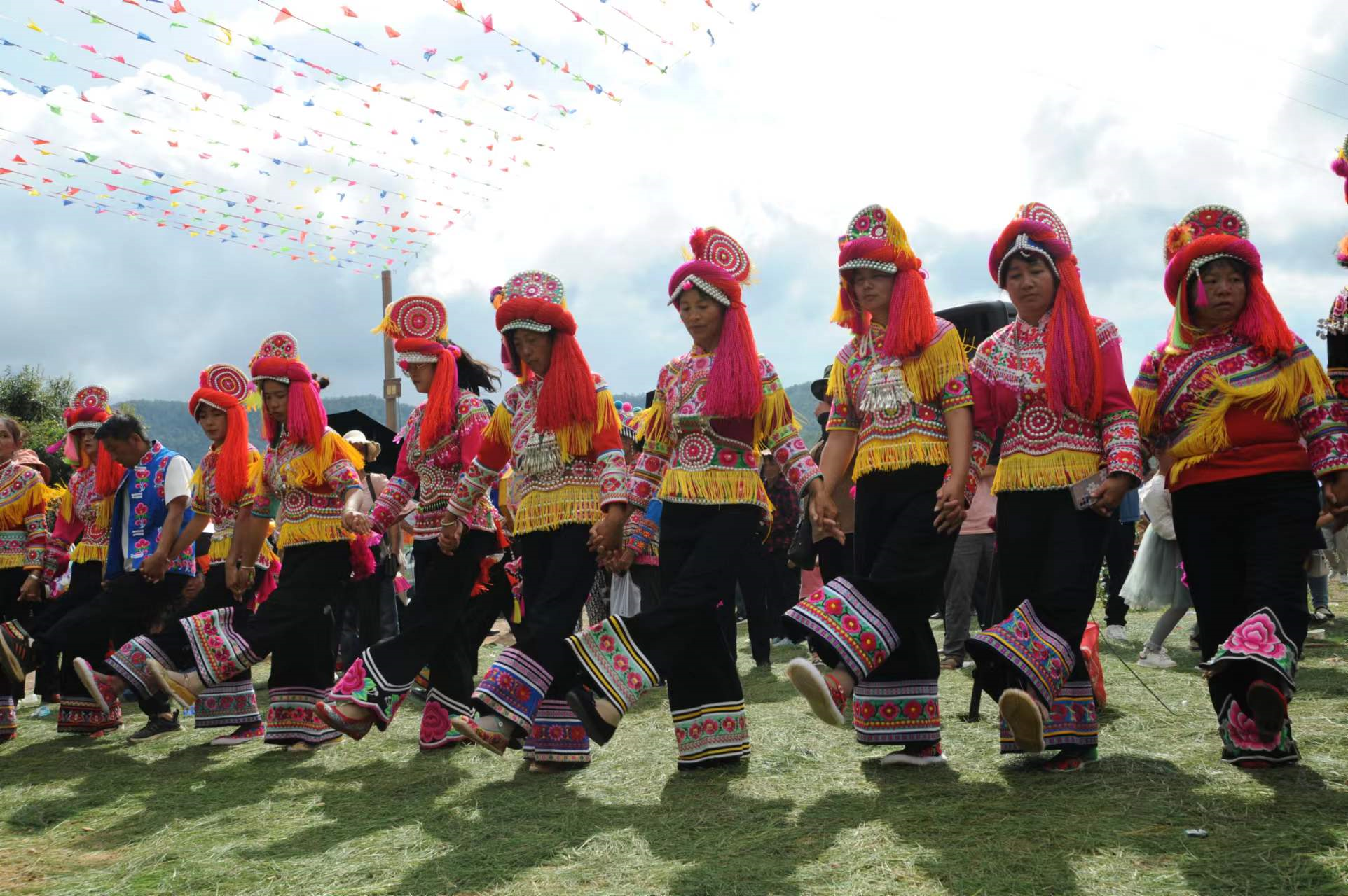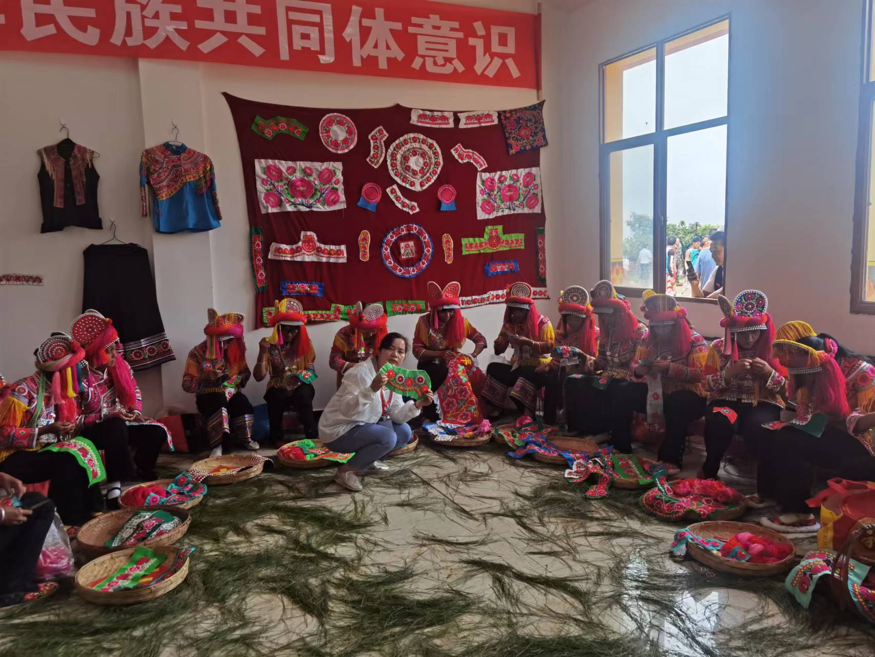彝家姐妹赛妆齐,村史厅中绣品奇。