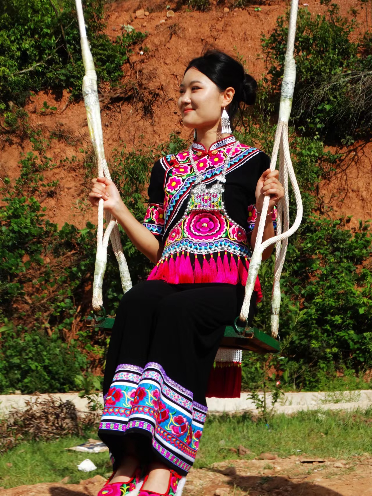 彝家美女秋千荡,仿若云飘仙子来。