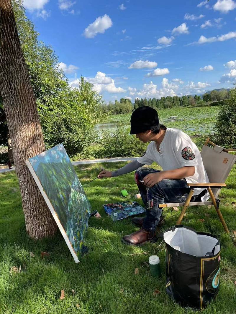 云南油画学会秘书长、策展人、艺术家和丽斌说道:作为自我存在的人,不过是大地中的杂草、灌木、梨树等等的一部分。他自称自己就是一匹荒原狼,他的写生作品,就是孑然茕茕的“行者日志”。