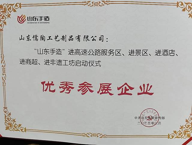 2021年获得山东省地理标志(原产地)优质产品,2021年6月15日CCTV10教育频道播出《匠人.匠心》专题片,2022年入选首届山东手造优选100,“儒陶系列文创器具”荣获2022第七届创意济宁大赛银奖,2022年第十四届中国(山东)工艺美术博览会既山东手造精品展。