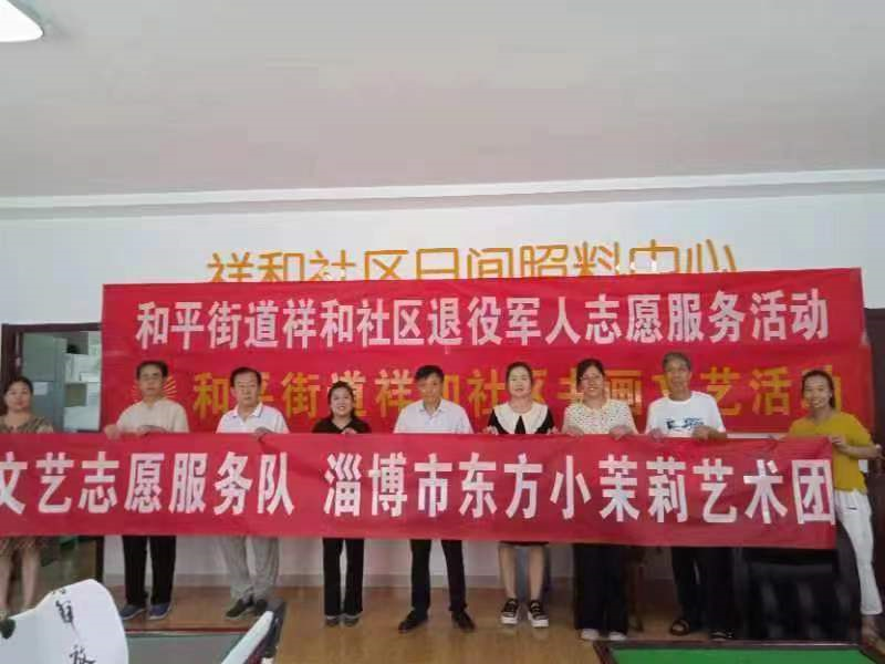 关爱功臣,奉献爱心。与市及张店区军队离退休干部服务中心开展双拥共建,为中心军队离退休干部开展志愿服务。在张店区军队离退休干部服务中心开设了音乐课,编排适合老干部特点的节目,排练大合唱等。7月28日,艺术团联合张店区广场舞协会承办了专场音乐晚会,与中心老干部、工作人员和家属,共庆八一建军节,受到了热烈欢迎。