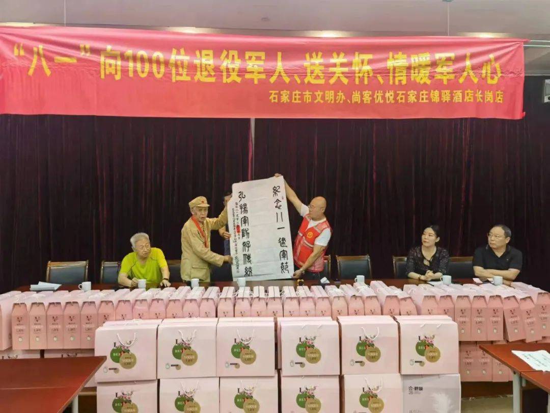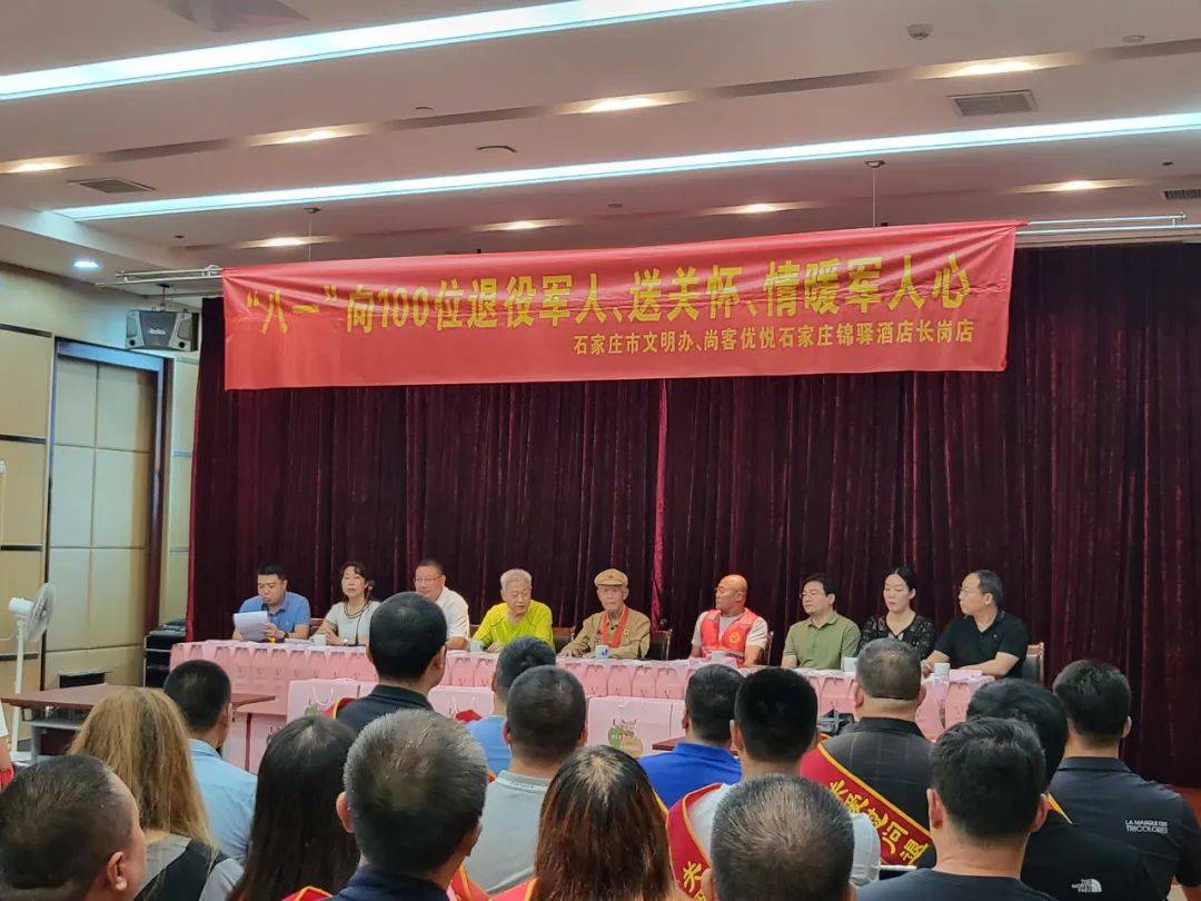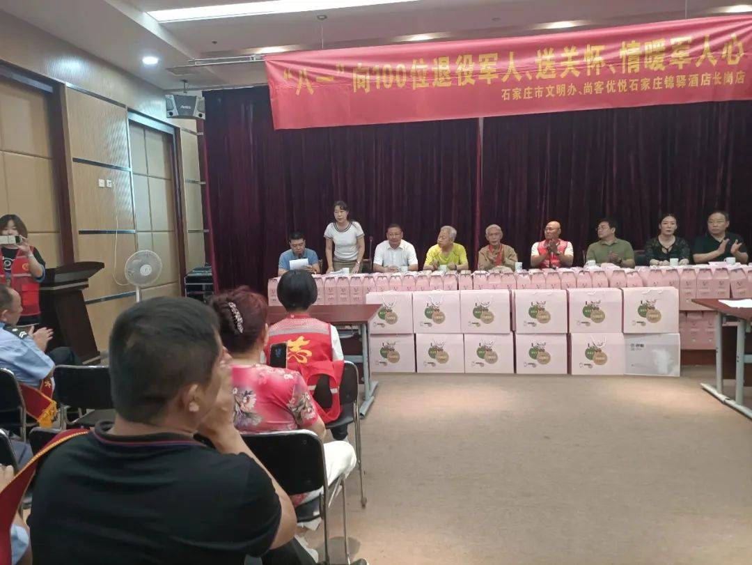 “八一”送关怀,情暖军人心,由石家庄市文明办,石家庄供水有限责任公司、长安区文明办、石家庄一家人志愿者团队,尚客优悦石家庄锦驿酒店长岗店共同发起的慰问退役老兵活动在石家庄市新世隆三楼西二会议室举行。