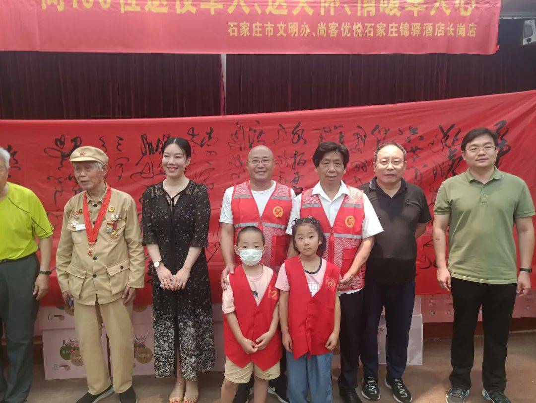 上午9点半,慰问活动开始。石家庄市文明办,长安区委宣传部副部长、文明办主任贾晖、一家人志愿者团队和尚客优悦石家庄锦驿酒店长岗店员工与100位来自石家庄的退役老兵欢聚一堂共庆节日。