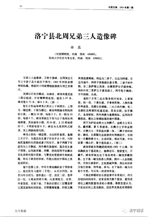 北周保定五年三兄弟造像碑(现存在郑州博物院一号大厅)