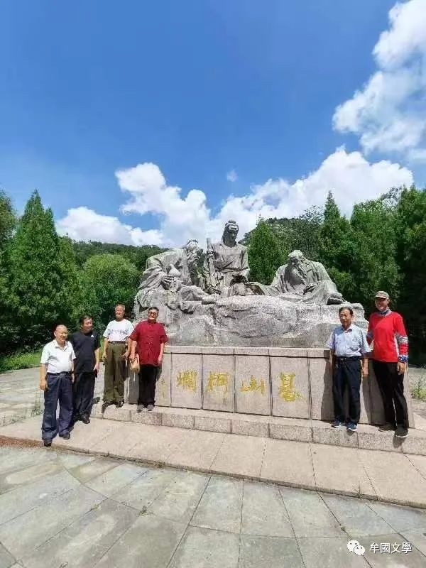 最后,在刘庆华老师的建议下,文友们从八大庄饭店出发,沿着山路向前行走,观看了棋山柯烂雕塑、棋山广场、玄之又玄碑、元帅碑等。