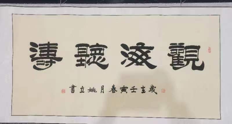 1967年参加工作后,姚立先生开始对书法艺术有了极大的兴趣和爱好。从此,他常常在工作之余或空闲时间里,潜心练习书法。几十年来,他笔耕不辍,行楷隶篆草均有涉及,尤以隶书、篆书见长,代表作品有:祖国万岁、