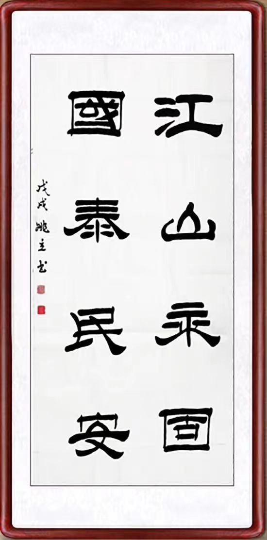 姚立先生擅长隶书。以汉隶经典为根底,张迁的雄厚,好大王的稚拙,礼器的劲健,石门颂的率意,掺入魏碑精神,他博采众长,其隶书作品或雄强、或古雅、或飘逸、或朴茂,神彩飞动。古质中不乏典雅,气质外蕴含神韵,具有洒脱率真、古朴厚重的个人书风。由此显出含蓄、拙朴,静气,使人欣赏,意境久远。