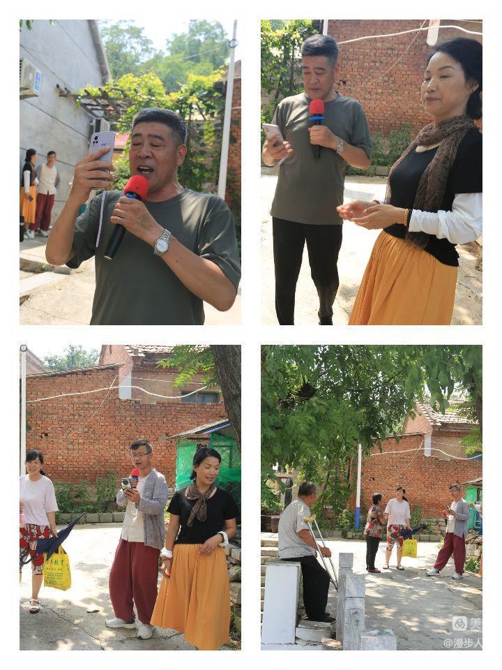 这是一支专业的演唱队,自带音箱话筒,近年来,他们唱遍了淄川的大街小巷,歌声也传遍了四面八方。今天来到这里,首先每人一支,独唱合唱二人唱,有条不紊地在苗峪口农家乐的槐树下进行,为这古老的乡村带来了蓬勃生机!