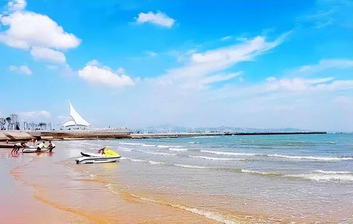 学习结束后自然要去看大海。吃过早饭我们游览了栈桥、鲁迅公园,来到了位于汇泉湾畔的第一海水浴场,兴高采烈地下了海。对我来说这里是故地重游,初中时放暑假,和大姨家的两个表哥一同游过这里。那时游到拦鲨鱼网,连续两个来回都不觉得十分累,只是坐在拦鲨鱼网的纲绳上扶着浮漂稍事休息,很是轻松自在。