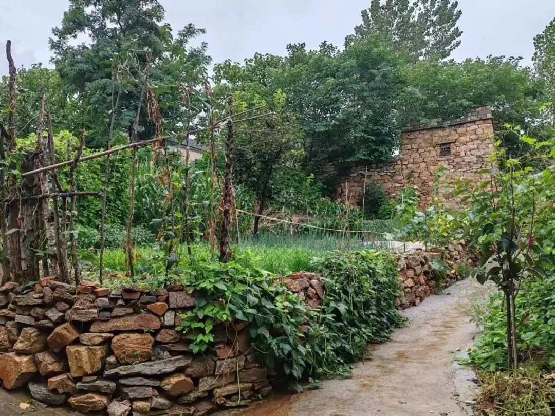 我们一边赞叹着,一边走到了水泥路的尽头,便全是湿漉漉的土路。我们踩着泥泞继续前行,无意中看到了几间老石头房子,它们正是我们的父辈倾尽了心血,用自己辛勤的双手一块石头一块石头砌起来的家园,它们就像铮铮铁骨的勇士一样,在飘泊的风雨中矗立了40多年,甚至比我的年龄还要大。毋庸置疑,它们就是上世纪七、八十年代的历史见证,希望这些老房子能够保存好原风原貌、原汁原味,在不久的将来能为我们的子孙后代,留下几处忆苦思甜的红色基地。