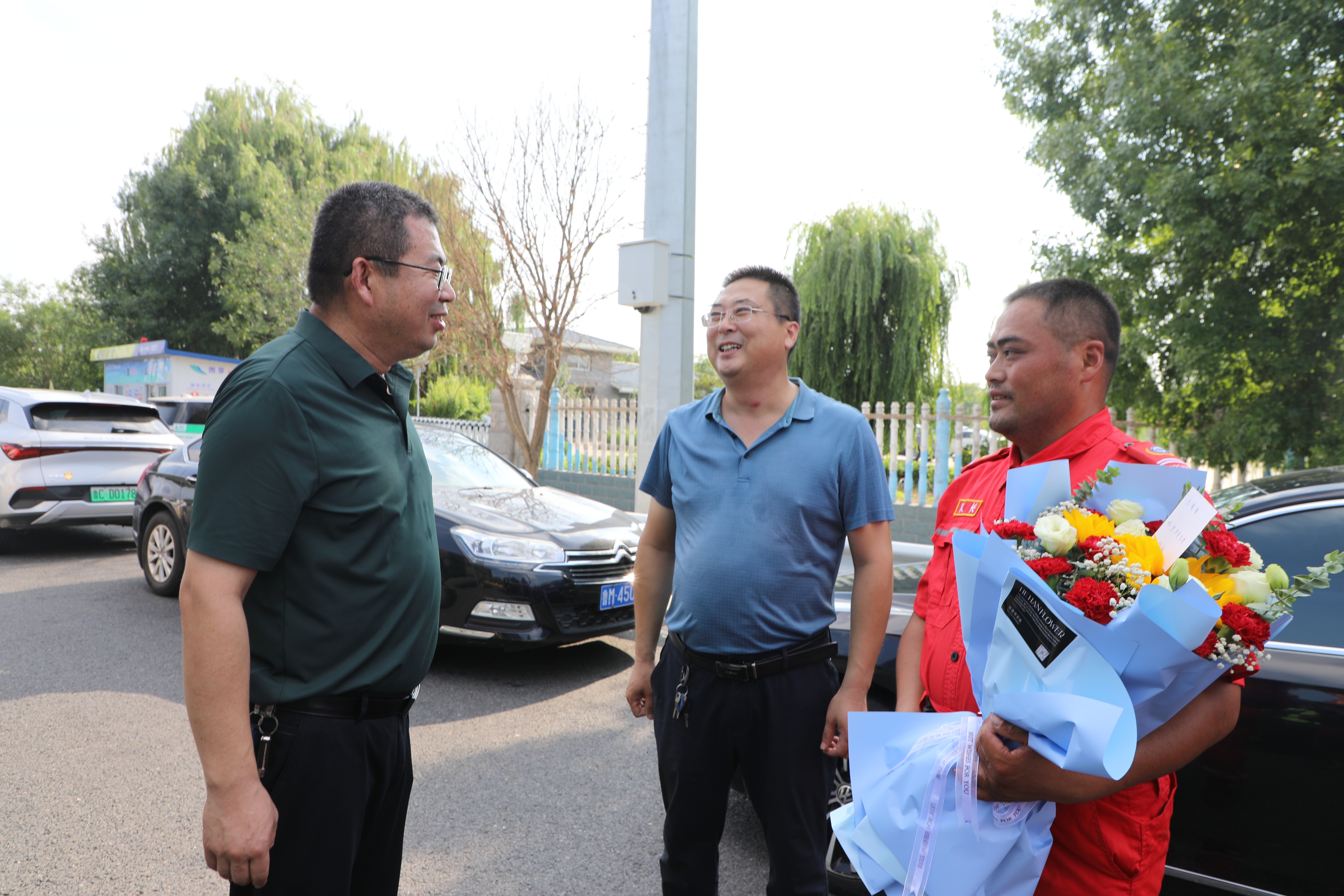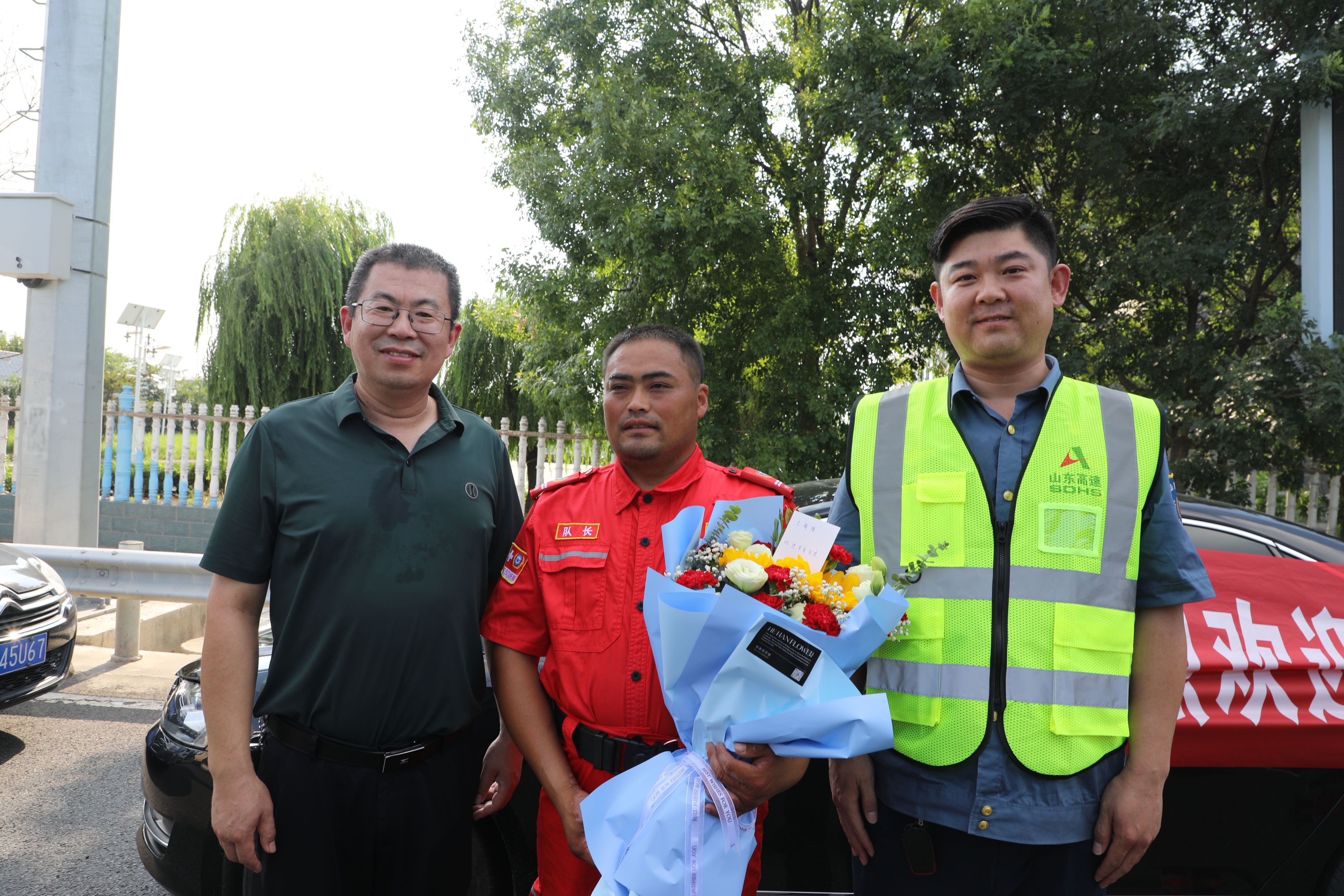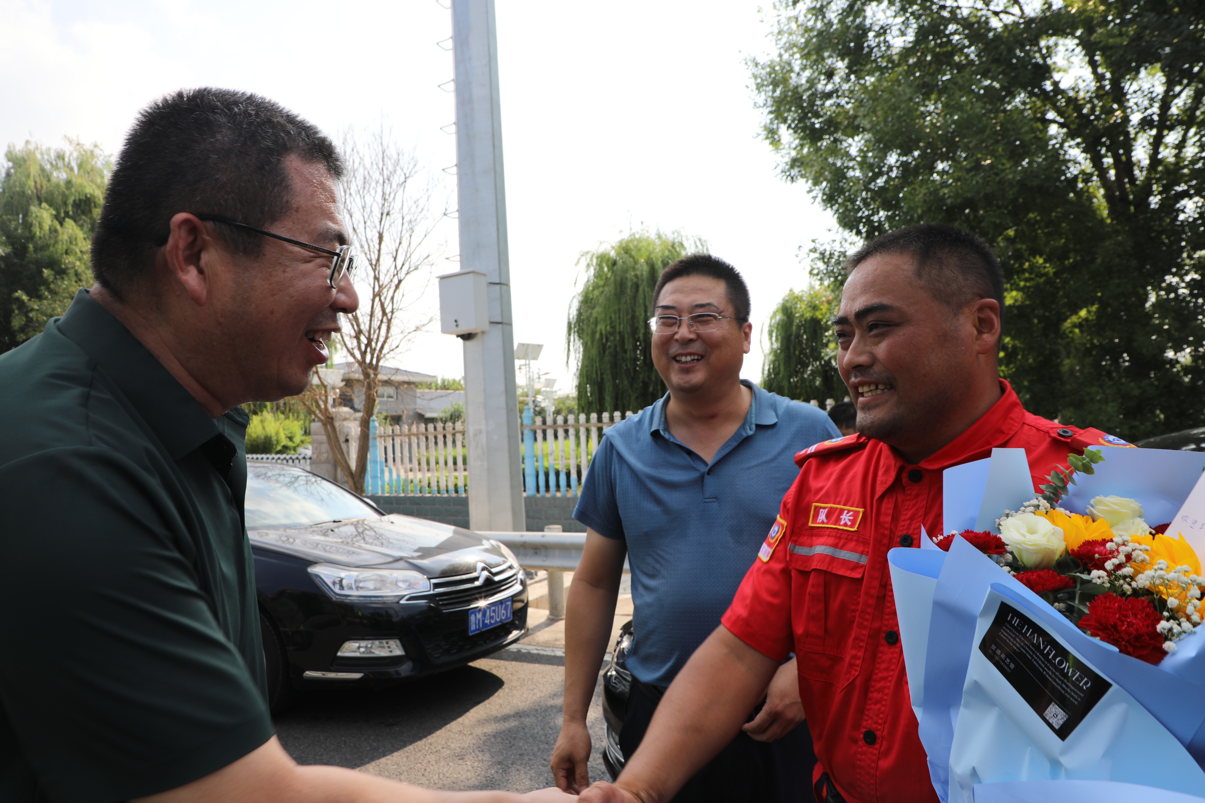 8月4日下午4时,阳信应邀赶赴河北抢险救灾的阳信县红十字会学雷锋应急救护志愿服务队(9958应急救援队)胜利凯旋。阳信阳信县红十字会领导特意到高速路口迎接,并送上鲜花。滨德高速阳信站负责人特意安排开辟绿色通道,免费通车,对英雄凯旋表示祝贺。
