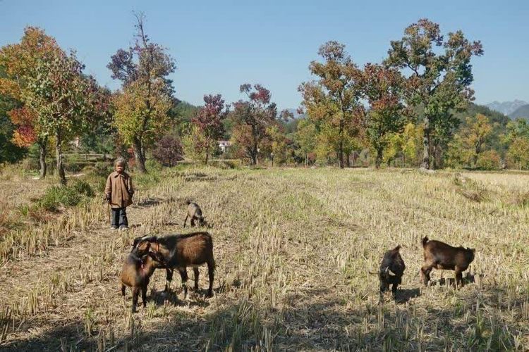 悠闲地啃食茬根新发的青苗