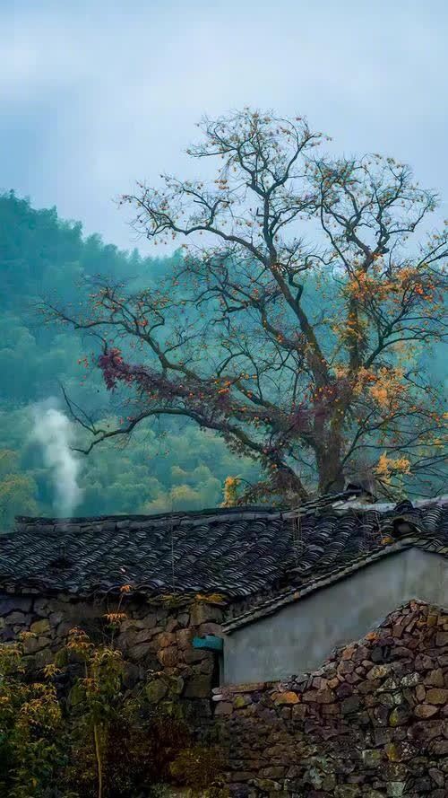老屋前有三棵柿子树