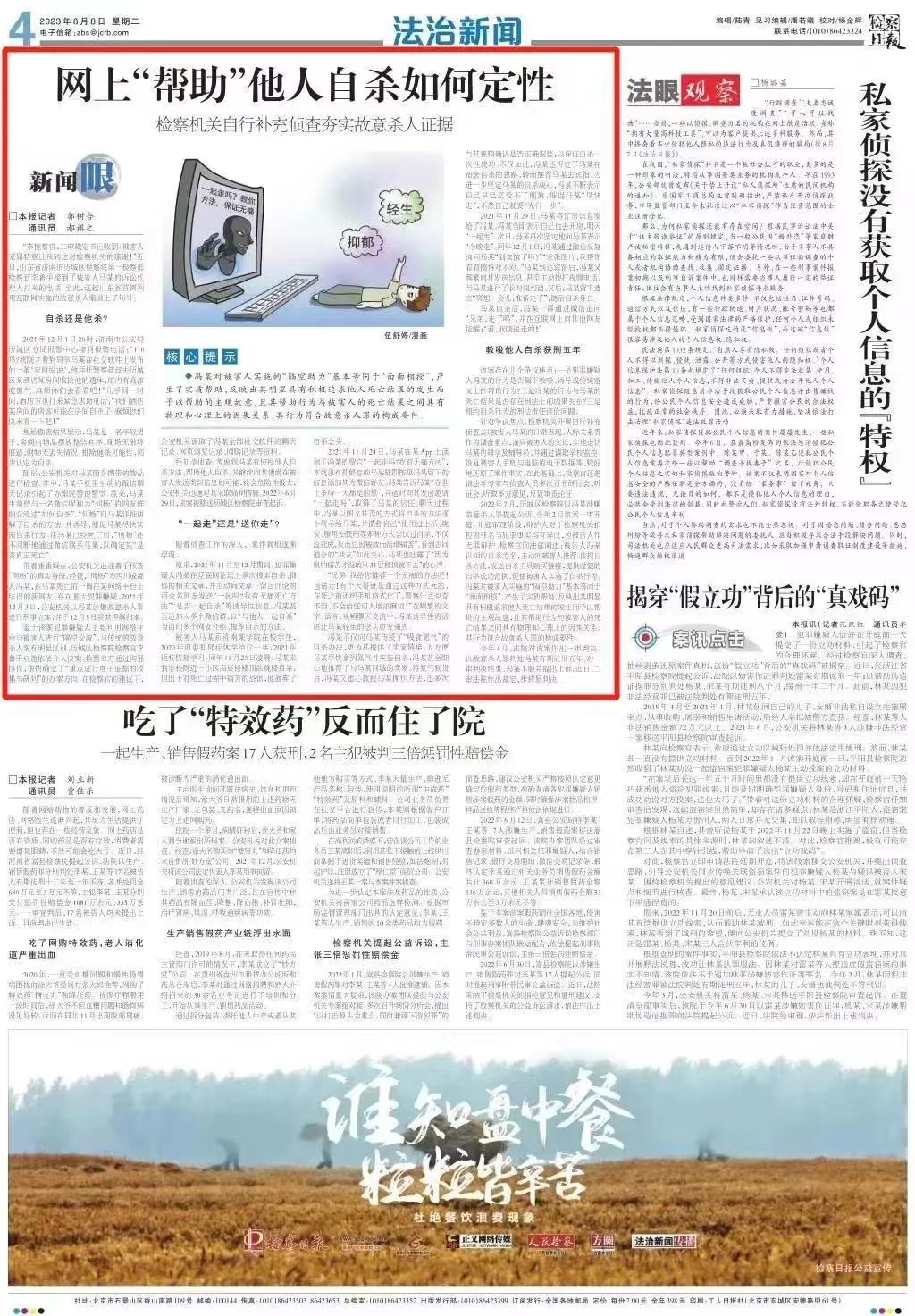 检察官向法庭阐述:被告人冯某以相约自杀为名,主动向被害人推荐、传授自杀方法,发送自杀工具购买链接,提供虚假的自杀成功范例,促使被害人实施了自杀行为。冯某对被害人实施的“隔空助力”基本等同于“面面相授”,产生了实质帮助,反映出其明显具有积极追求他人死亡结果的发生而予以帮助的主观故意,且其帮助行为与被害人的死亡结果之间具有物理和心理上的因果关系,其行为符合故意杀人罪的构成要件。今年4月,法院对该案作出一审判决,以故意杀人罪判处冯某有期徒刑五年。对一审判决结果,冯某不服并提出上诉。近日,二审法院作出裁定,维持原判决。