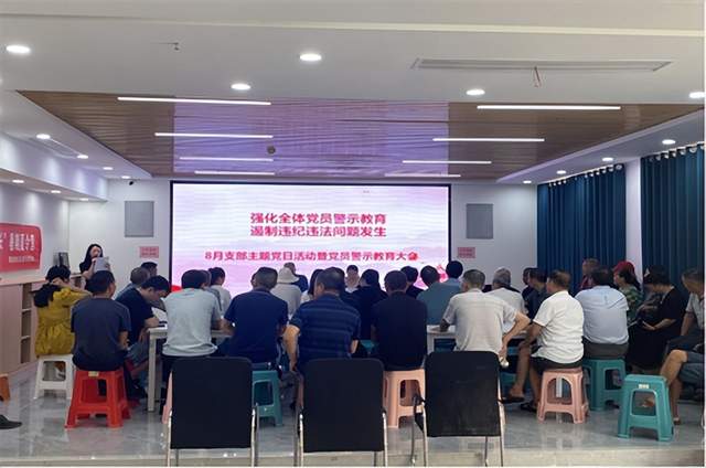 为强化党性锤炼,严明纪律规矩,遏制党员违纪违法问题发生,根据全面从严治党有关要求,结合豹澥街道实际,武汉东湖新技术开发区豹澥街道黄金堂社区党委组织召开8月支部主题党日活动暨党员警示教育大会。
