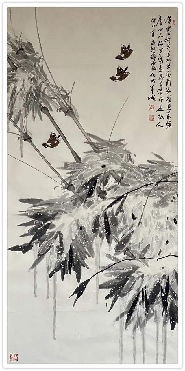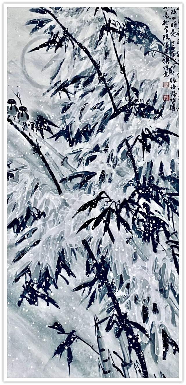 先生的书画艺术历练出非凡的影响力,与他历练人生同工异曲!参军二十六载,早生华发修武备、笔作长枪文载道!他心有军旅情怀,情有报国之志,所作丹青形神兼备,尤贵于神。以铁胆雄魂写寒竹,风萧萧,劲节凌冰,刚且韧,劲且强!成为一题专享的艺术课题。竹圣郑板桥没有这样画过,张福铭把自己在军营历练的所有感受与积淀画成了筋骨劲竹,亘古未有。竹作人格化,画写精气神,独树一帜,大振心颜!军营励志,丹青写魂。这就是张福铭先生文武兼备涵养出的独特创造力!