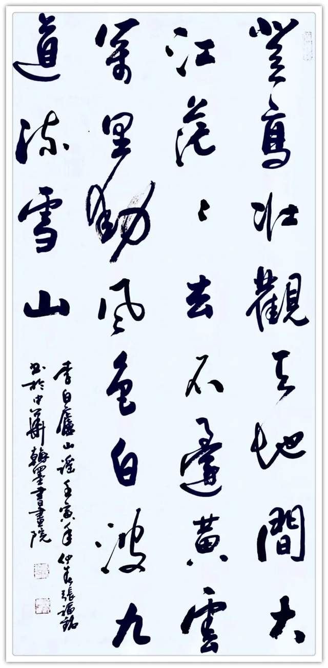 文武兼备,书画双修。作為歐陽中石大師的弟子,張先生书法线条造型的意识相当强烈,一笔拉过来,如临危居高,作高低有趣。一笔纵过去,如虬龙蜿蜒,写牵丝映带。笔与手合,手向心师,经过激楚浪以成文的表达,写出了小草千字文的铁点银钩,亦可以把兰亭序的千变万化表达得出神入化。技达精时谓之巧,艺到峰时名为妙。先生之书法亦如丹青创作,巧妙兼生,功在三山巅,佳谈八方誉!