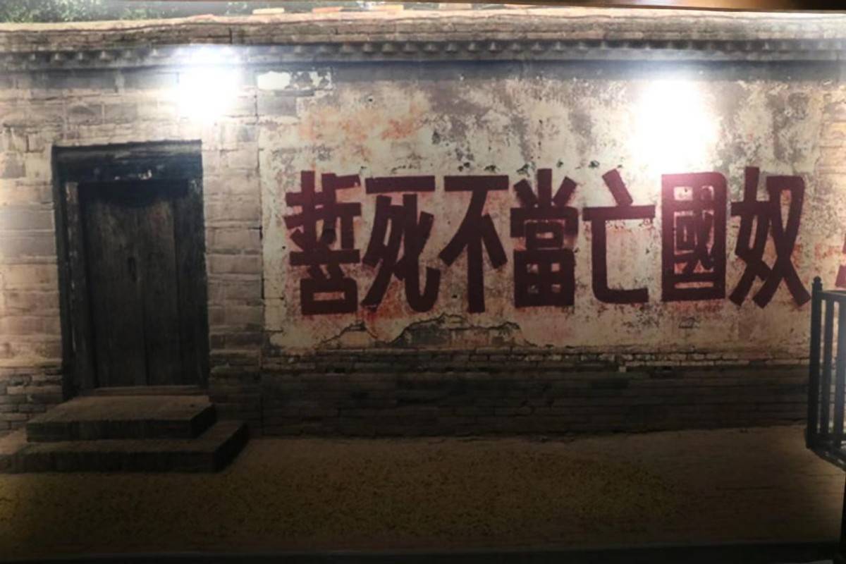 图为洛宁县抗日民主政府纪念馆中模拟还原抗日时的墙上宣传标语。“誓死不做亡国奴”七个字展示了当时的抗日革命战士不屈的意志和斗争精神,看到这七个字仿佛有声音在耳边呐喊,“誓死不做亡国奴!”抗日英雄的声音回荡耳边,红色的大字仿佛是沾满了烈士的鲜血,激励着实践队队员不畏艰难,提醒着实践队队员们不能忘记抗日战士的牺牲和贡献,没有他们,哪来现在的幸福生活!