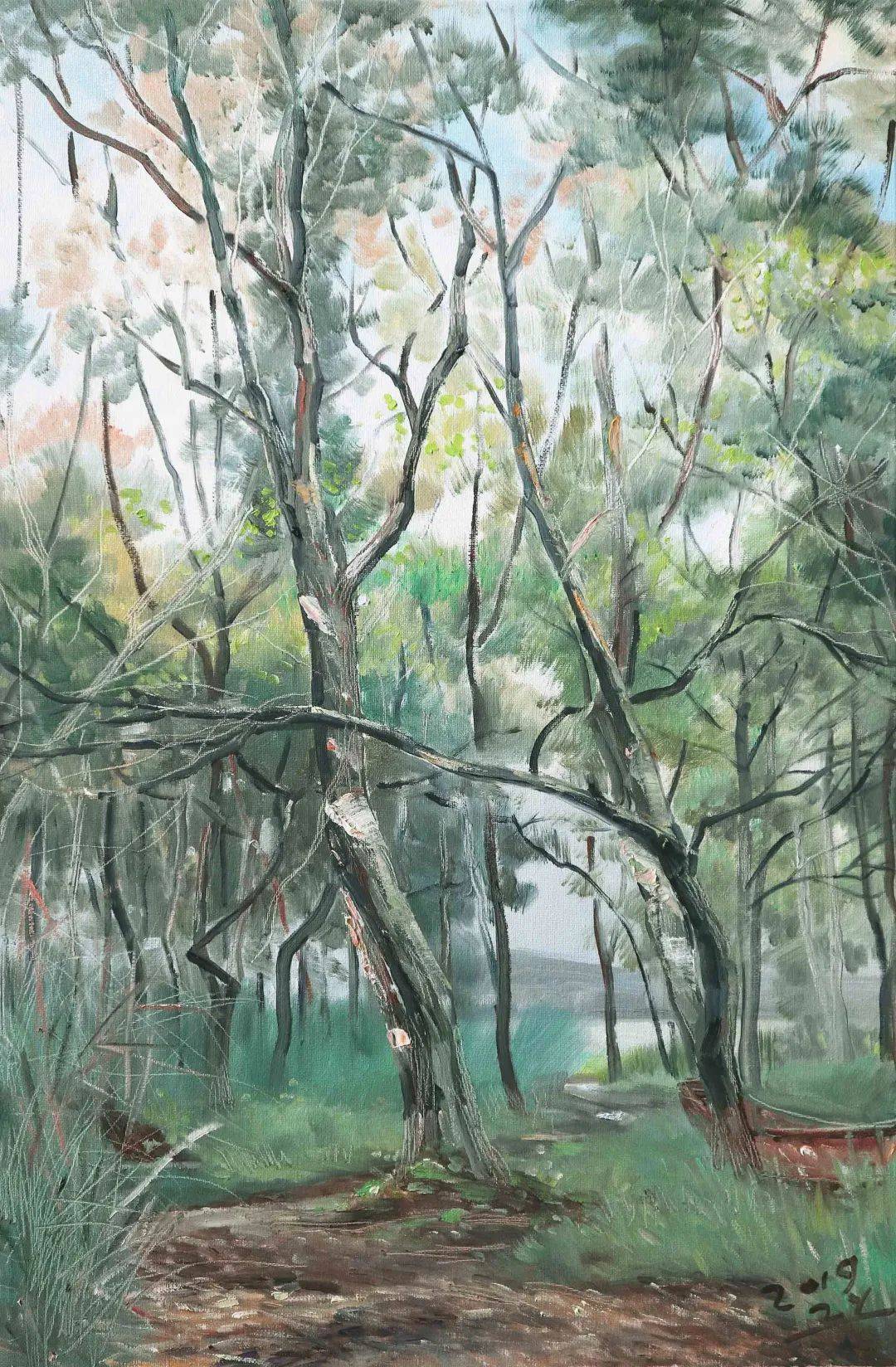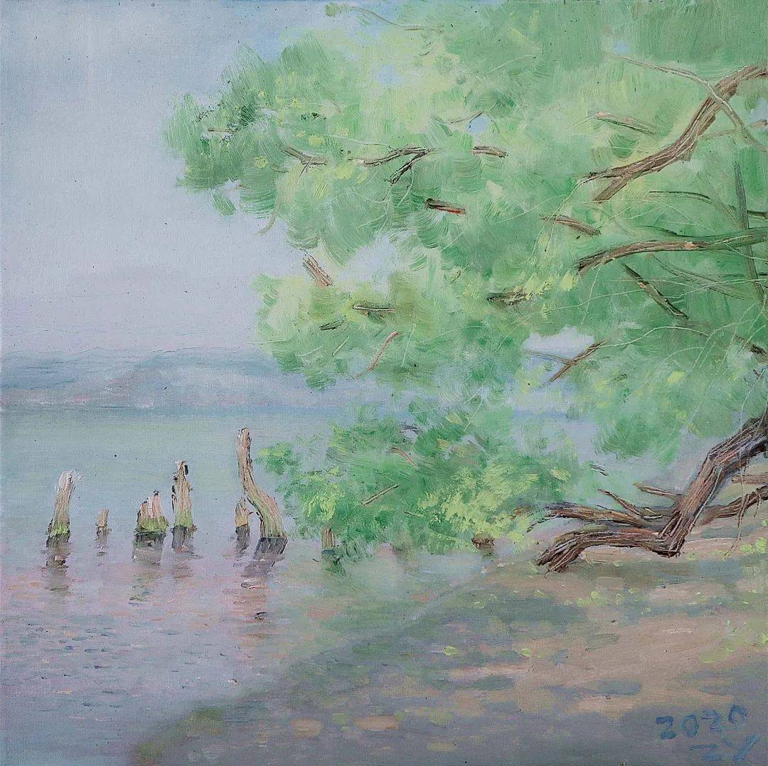在张毅先生的作品中,多能感受到自然的韵律与芬芳,绿和蓝是他作品中的主要色调。看这样的作品,总能让我们心情愉悦,思想飞翔。