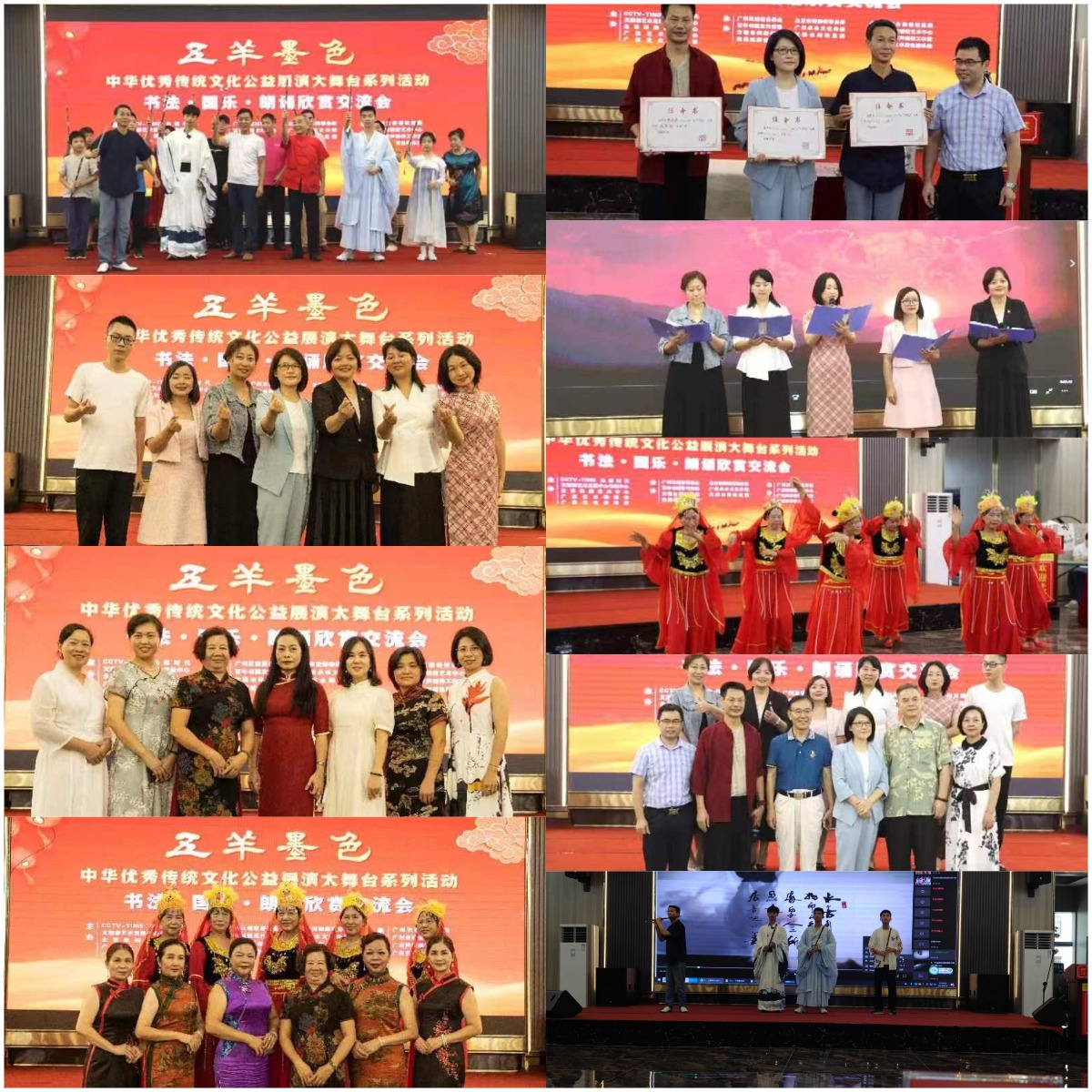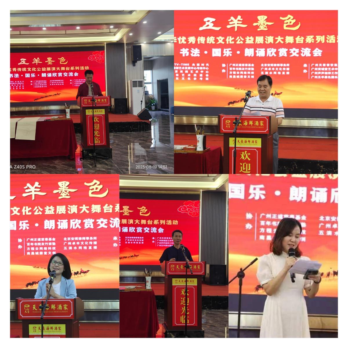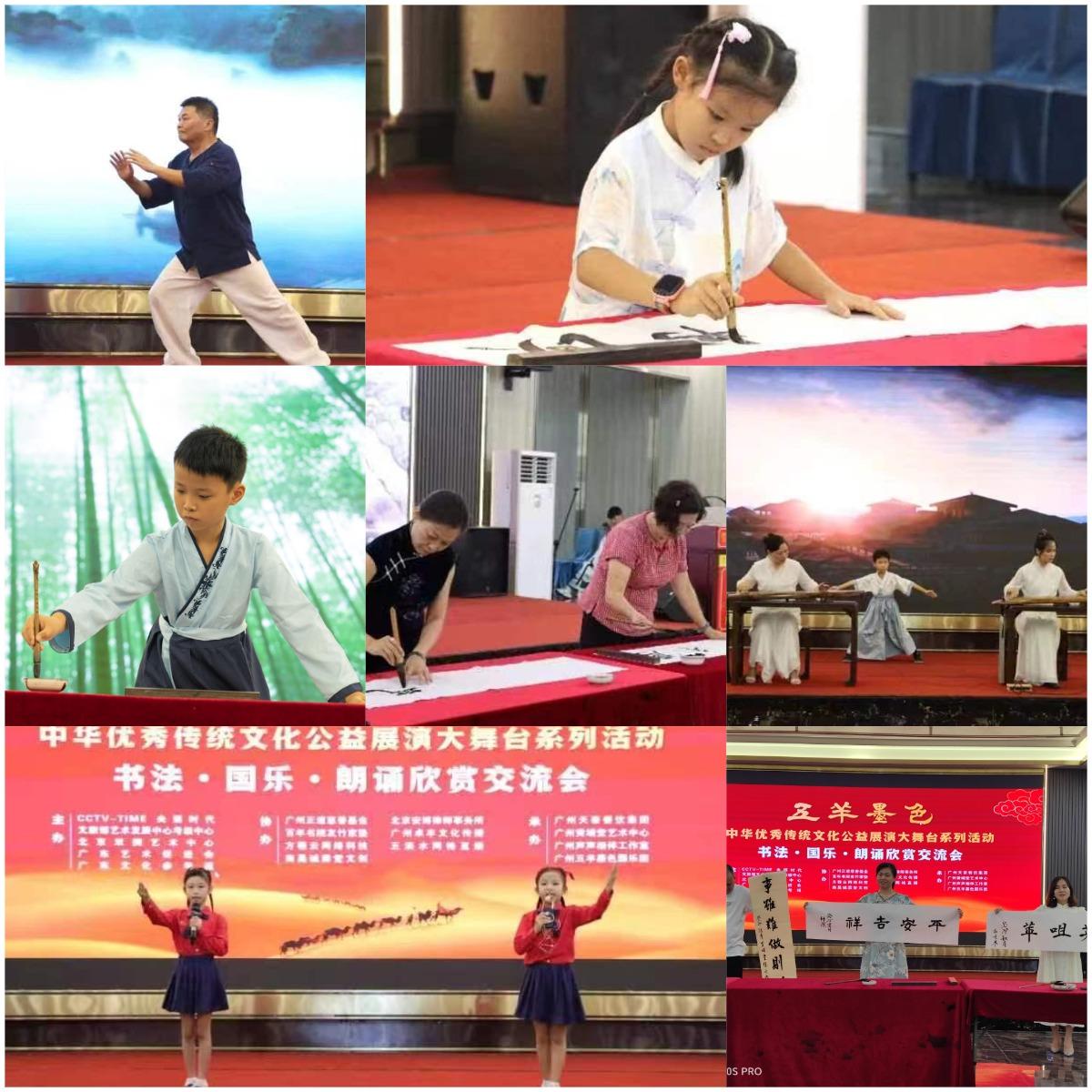 【央媒时代报视TOP中国品牌万里行中国时代周刊CCTV-TIME央媒网共同关注】(王文)8月19日下午,由CCTV-TIME央媒时代产业创新发展促进中心、文旅部艺术发展中心考级中心、北京双拥艺术中心、广东艺术促进会、广东文化参考报联合主办的“书法国乐朗诵欣赏交流会”在广州“五羊墨色”中华优秀传统文化公益展演大舞台举行。20多个节目、100多个老中青少年的才艺展演将活动一次次推向高潮。央媒时代产业创新发展促进中心杜平在致辞中说,这场由知名书法家李建讯老师倡导的公益展演活动,受到了社会各界的广泛关注,300多家媒体同步进行跟踪报道。